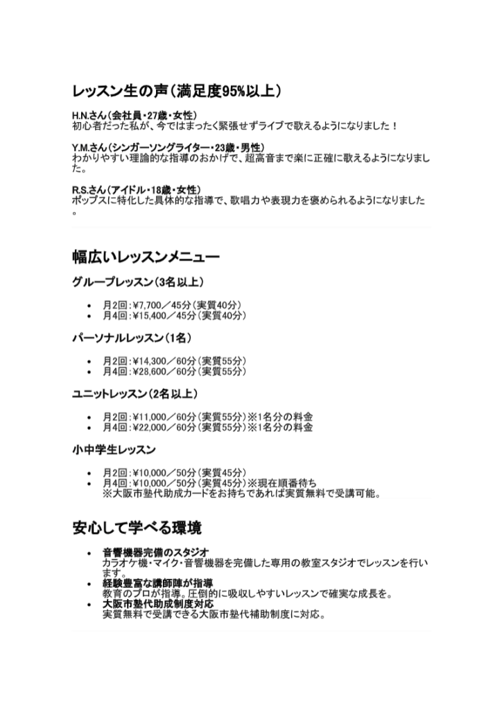 初心者・プロ志向、話し方のコースまで、あなたの目的に合わせたレッスンを提供します。